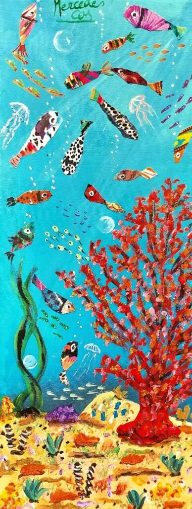 País:España Título:En las profundidades Técnica:Acrílico y telas sobre lienzo. Medidas:20 x 50 Precio:60€ Contacto:mercedescas444@gmail.com Sin comisión de venta:Tenerifekonexion.es no cobra comisión, ni a los artistas ni a los compradores, en la posible venta y se limita a facilitar de manera alturista el contacto entre las personas interesadas en la posible transación.
