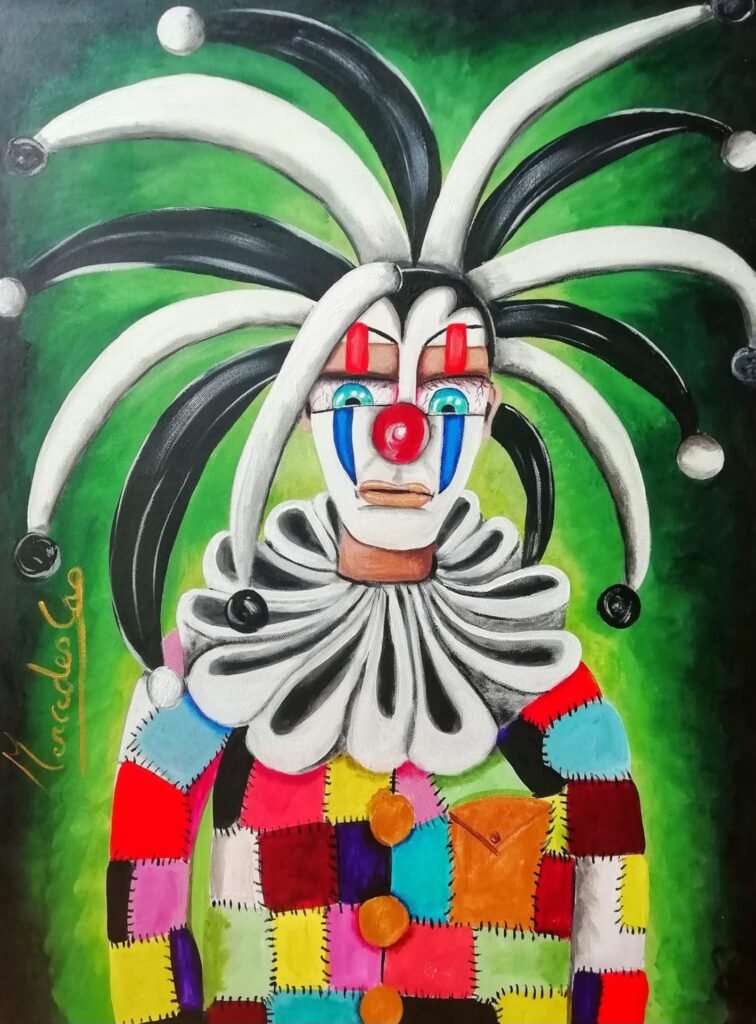 País:España Técnica:Acrílico sobre lienzo. Título:The dark clown Medidas:80 x 60 Precio:200€ Contacto:mercedescas444@gmail.com Sin comisión de venta:Tenerifekonexion.es no cobra comisión, ni a los artistas ni a los compradores, en la posible venta y se limita a facilitar de manera alturista el contacto entre las personas interesadas en la posible transación.